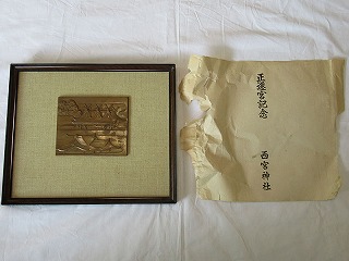 西宮神社記念品 額昭和36年の正遷宮を記念して作られた額。三連春日造の柄。 高30mm 横390mm 奥330mm ID:1092 |